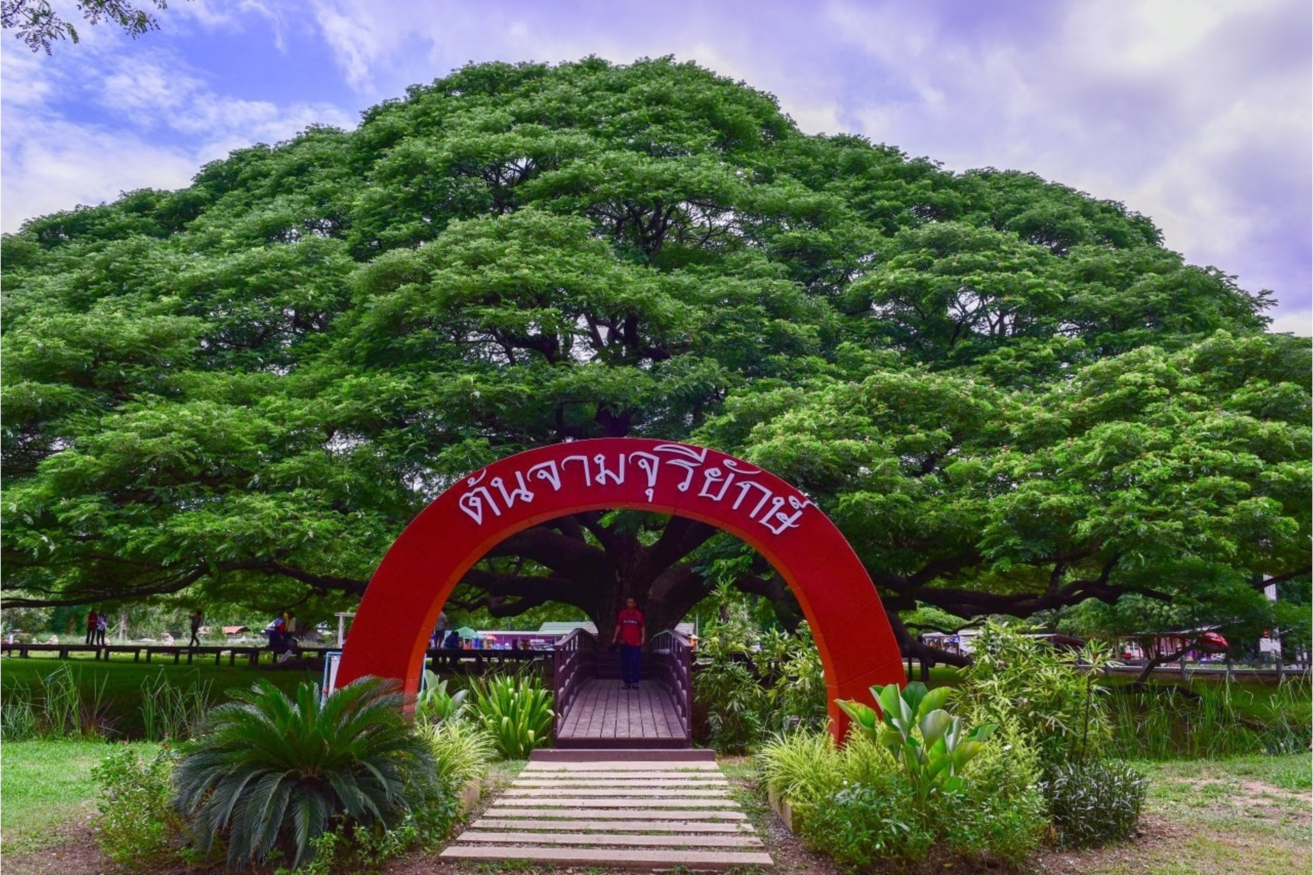 Admire the enormous Giant Monkey Pod Tree with its wide, umbrella-like canopy, offering a peaceful spot for photos and relaxation.