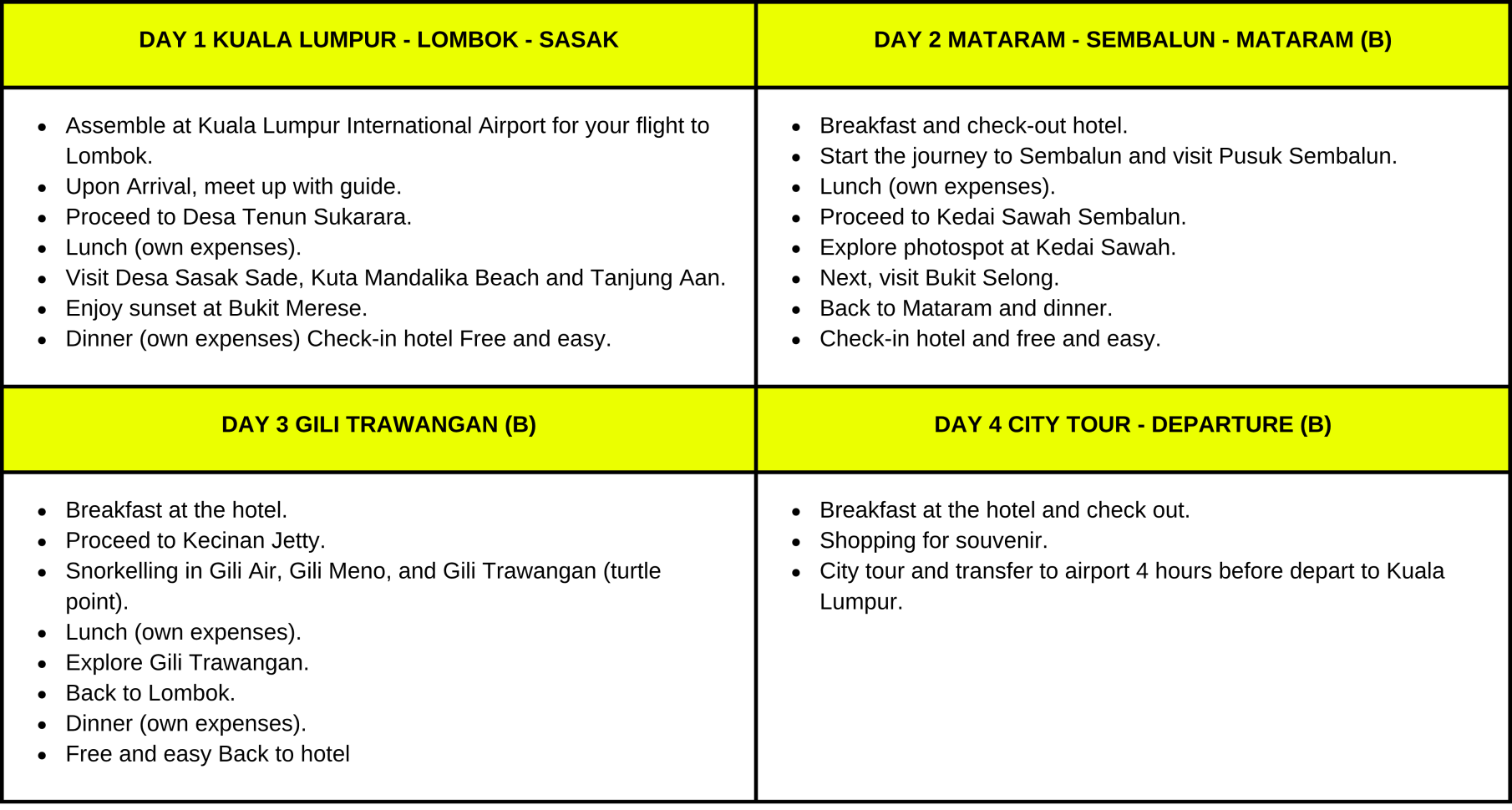 ITINERARY PAKEJ 4 DAY 3 NIGHT
