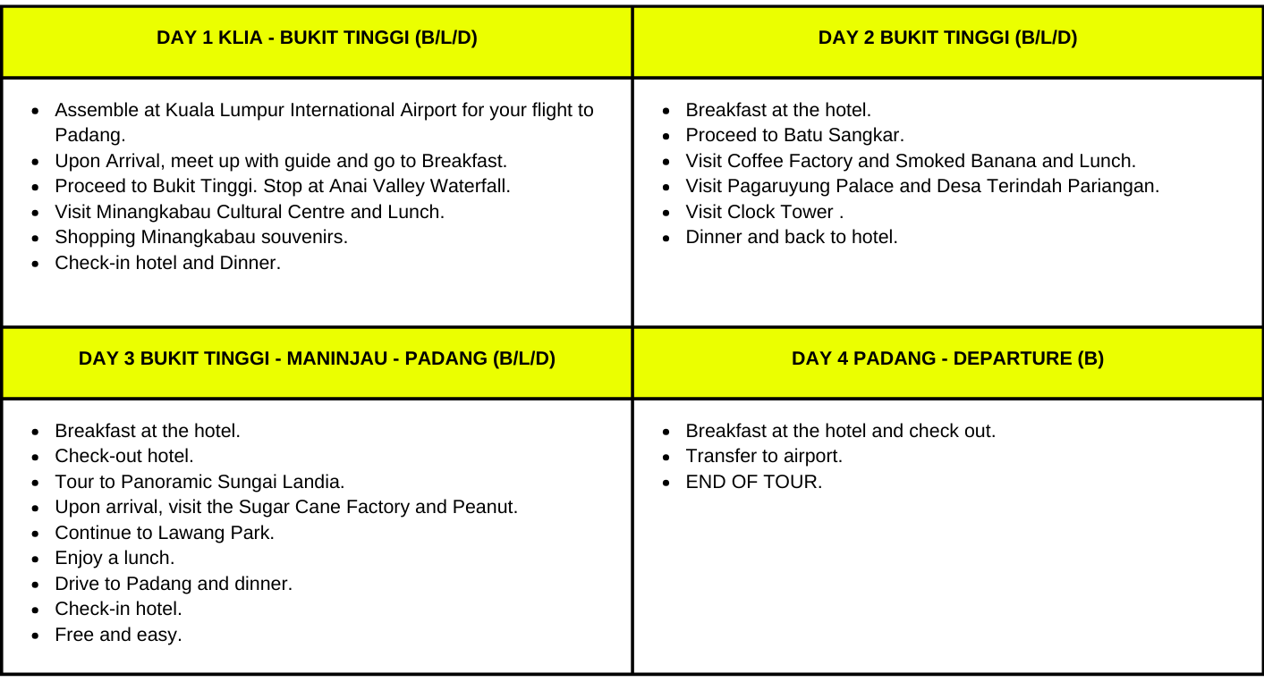 Visit Bukittinggi’s iconic landmark and enjoy the lively square filled with shops and local snacks.
