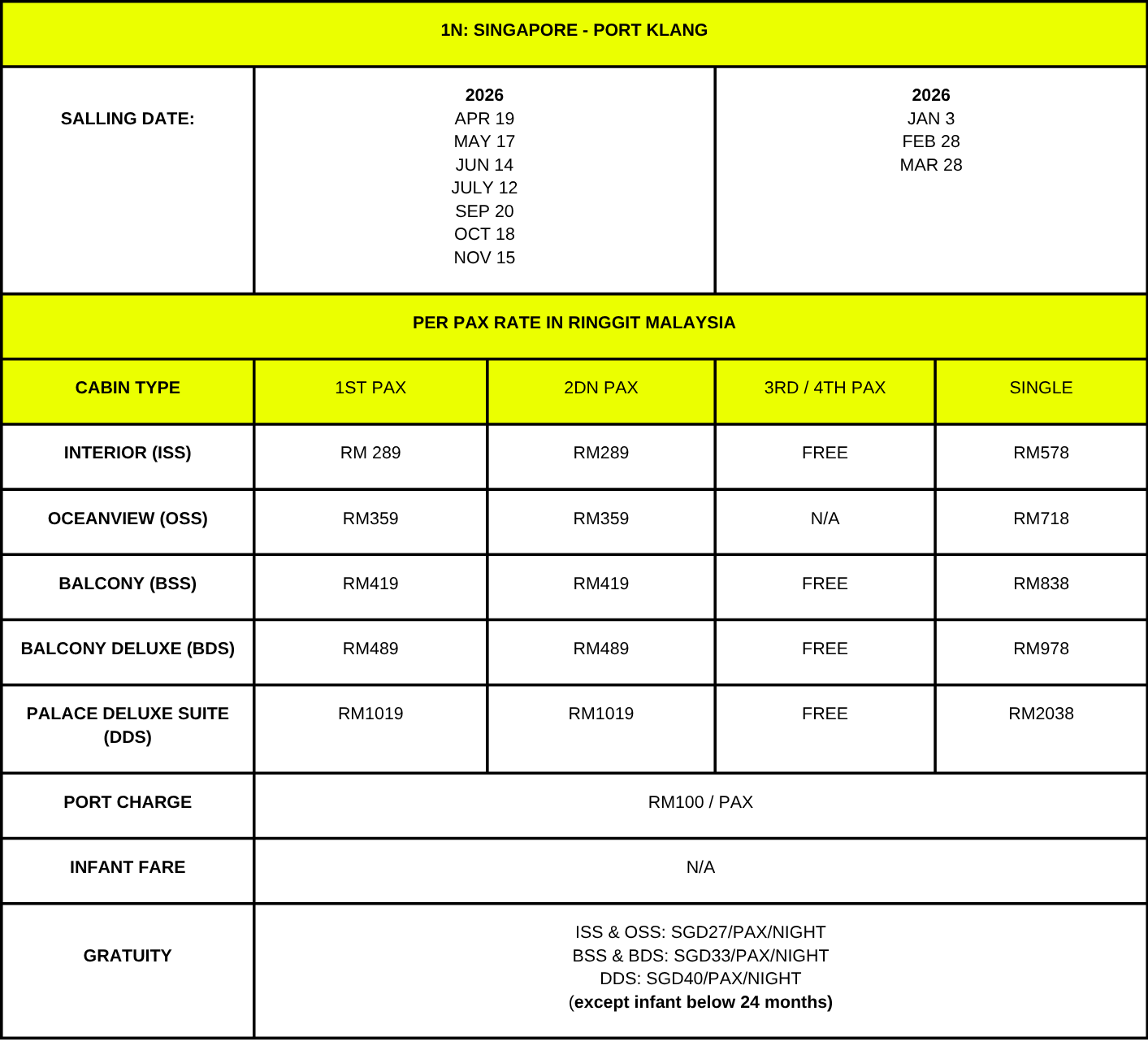 JENIS BILIK Interior StateroomOceanview Stateroom Balcony StateroomAktiviti The Lido Red Lion Pool Deck Bar Bar 360 Zodiac Theatre Main Pool Deck Karaoke Kids Waterpark JOM TANYA KAMI Nama: Nombor WhatsApp: Lain-lain: SUBMIT WhatsApp Kami